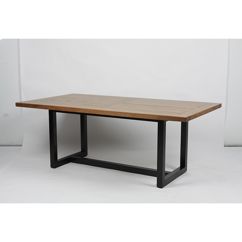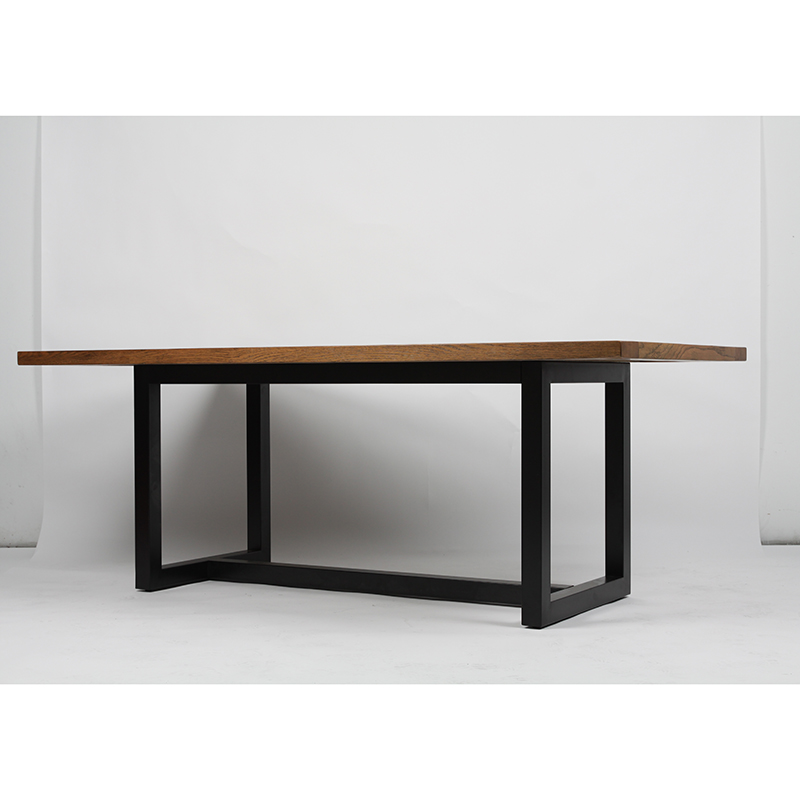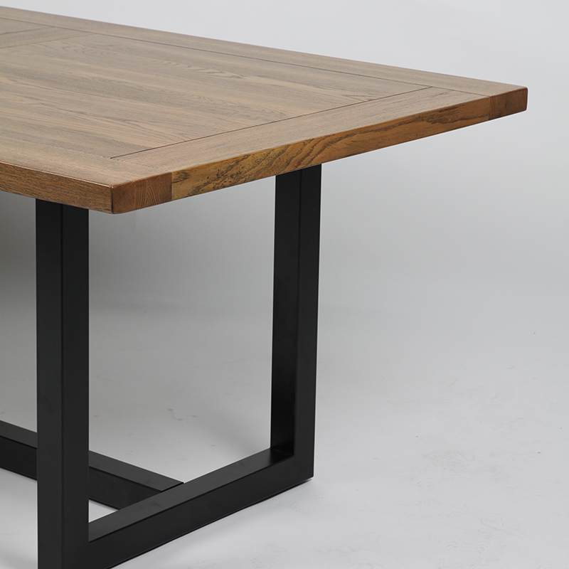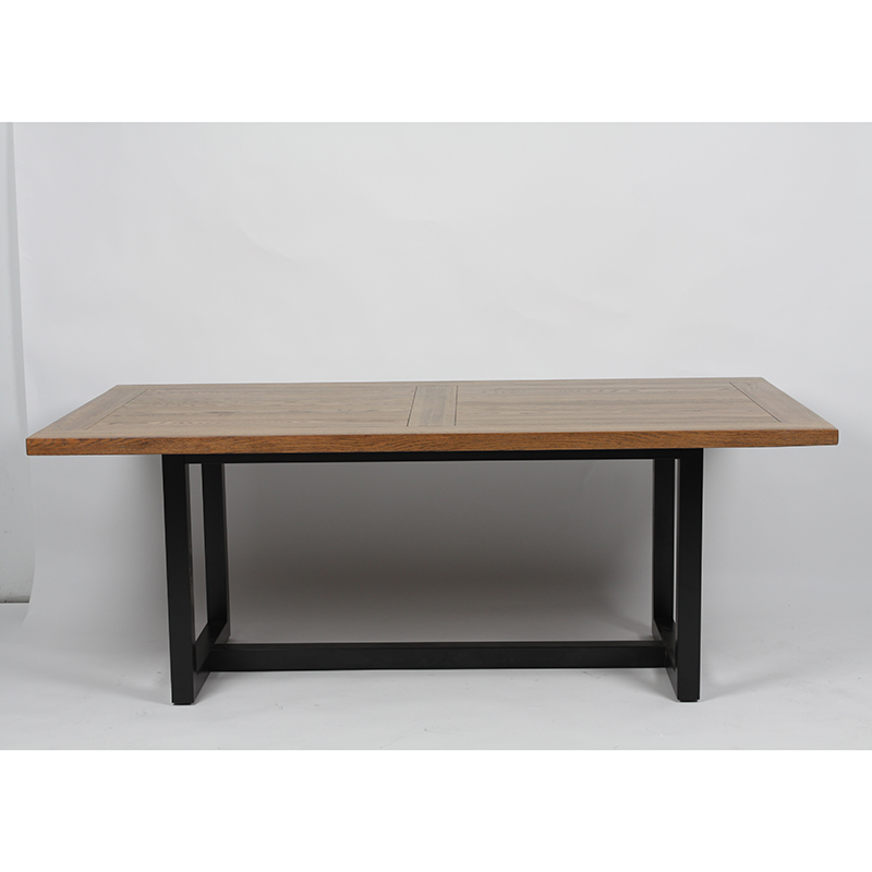 Mesa de jantar moderna de madeira maciça com base de aço inoxidável preta